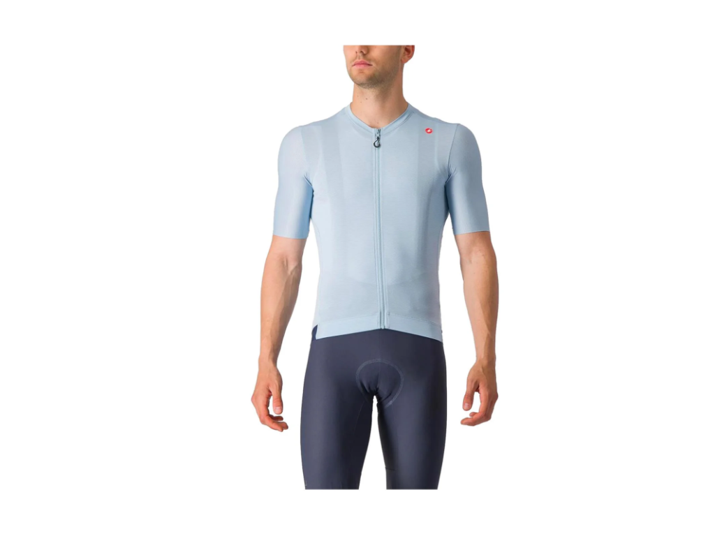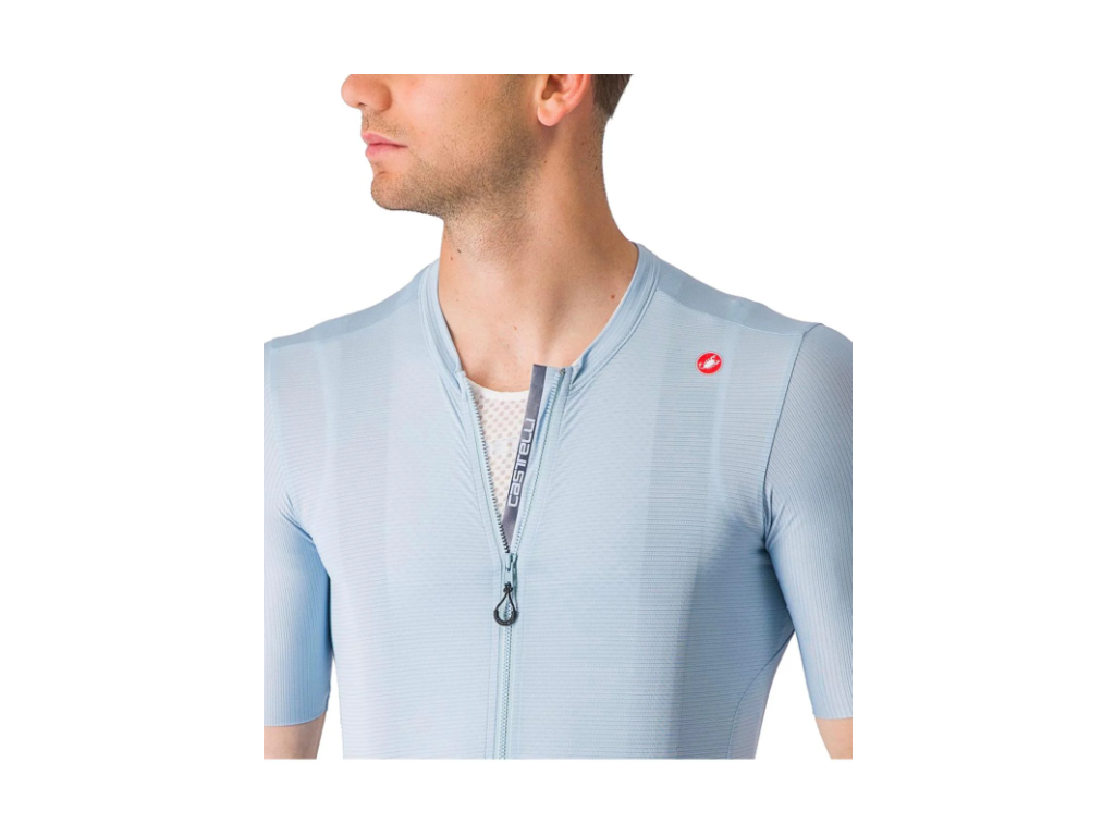 Materiál Air_O Stretch: Tato nová tkanina od Castelli je klíčem k úspěchu. Je neuvěřitelně měkká na dotek, vysoce prodyšná a díky své elasticitě se dres přizpůsobí tělu tak přirozeně, že o něm po pár kilometrech nevíte.