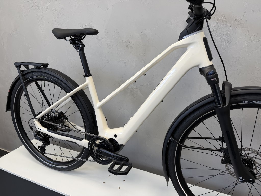 Díky rámu s konstrukcí Mid-step je nastupování hračkou v jakémkoliv oblečení, což v kombinaci s vnitřním vedením kabelů a čistým designem dělá z kola elegantní doplněk pro moderní životní styl. O maximální pohodlí se stará vzduchová odpružená vidlice SR Suntour a odpružená sedlovka, které společně vyhlazují městské nerovnosti i nezpevněné cesty. O řazení se stará moderní 10rychlostní sada Shimano Cues, která byla vyvinuta speciálně pro elektrokola, aby vydržela vyšší zátěž a nabídla extrémně hladký chod.